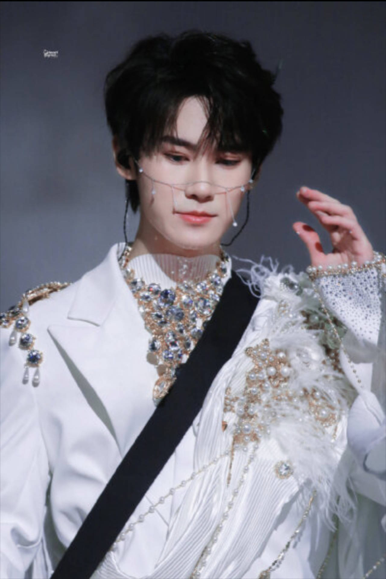 除了甜度超标的丘比特装,生日写真里还藏着反差惊喜。一套黑色丝绒西装内搭星空印花衬衫,领口微敞露出锁骨线条,单手插兜的慵懒pose被粉丝截成壁纸;另一套学院风针织马甲配格纹短裙,则完美复刻了校园剧里的初恋学长形象。三套造型从童话浪漫到轻熟魅力再到青春元气,像拆开盲盒般每款都让人眼前一亮。